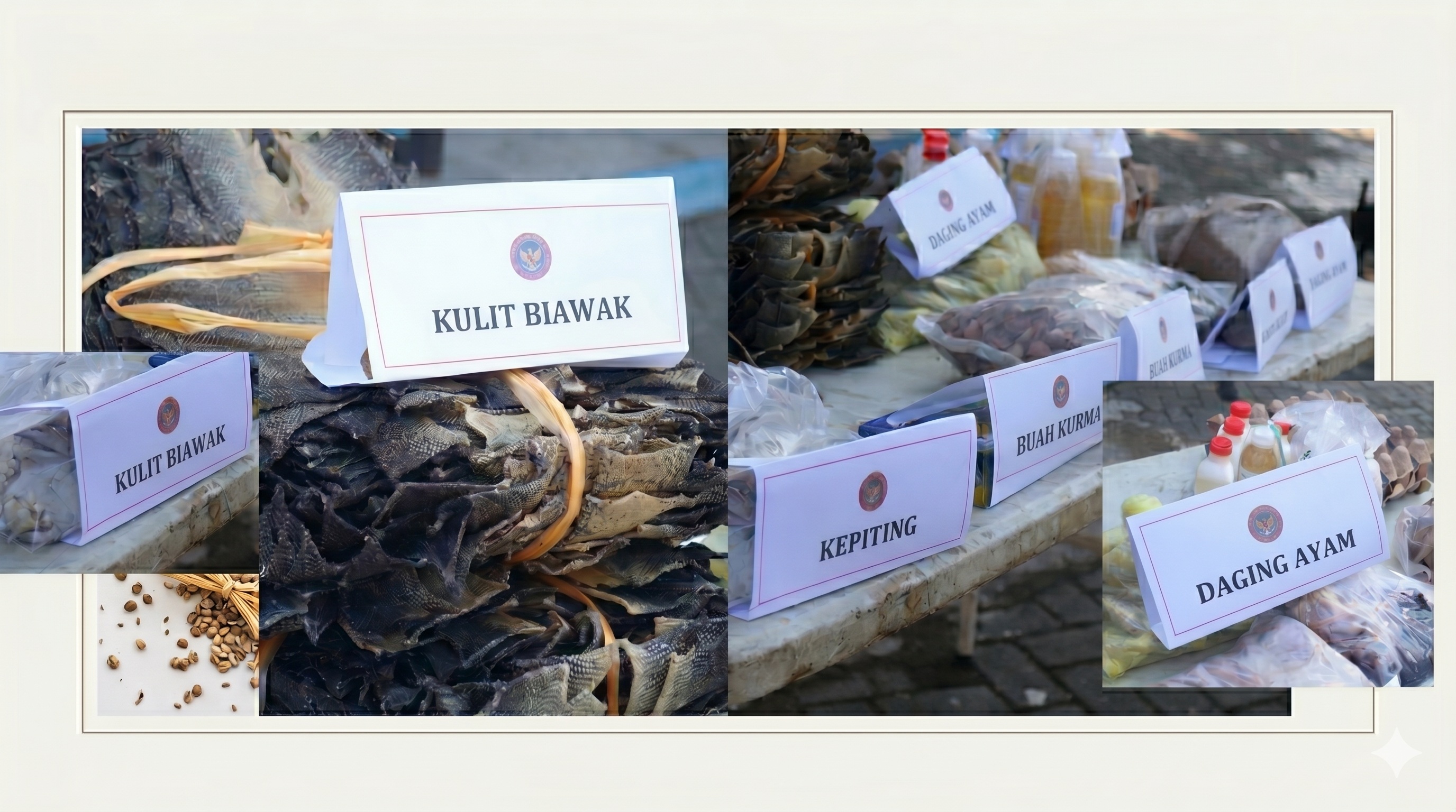 Kulit biawak sebanyak 1.984 lembar tersebut merupakan hasil serah terima dari Bea Cukai Teluk Nibung pada 9 Februari 2026. Selain kulit biawak, terdapat pula berbagai komoditas yang disita dari hasil penahanan penumpang kapal feri rute Malaysia–Indonesia. Barang-barang seperti buah, sayur, serta produk hewan dan ikan tersebut merupakan barang bawaan penumpang yang tidak disertai sertifikat kesehatan dari karantina negara asal.