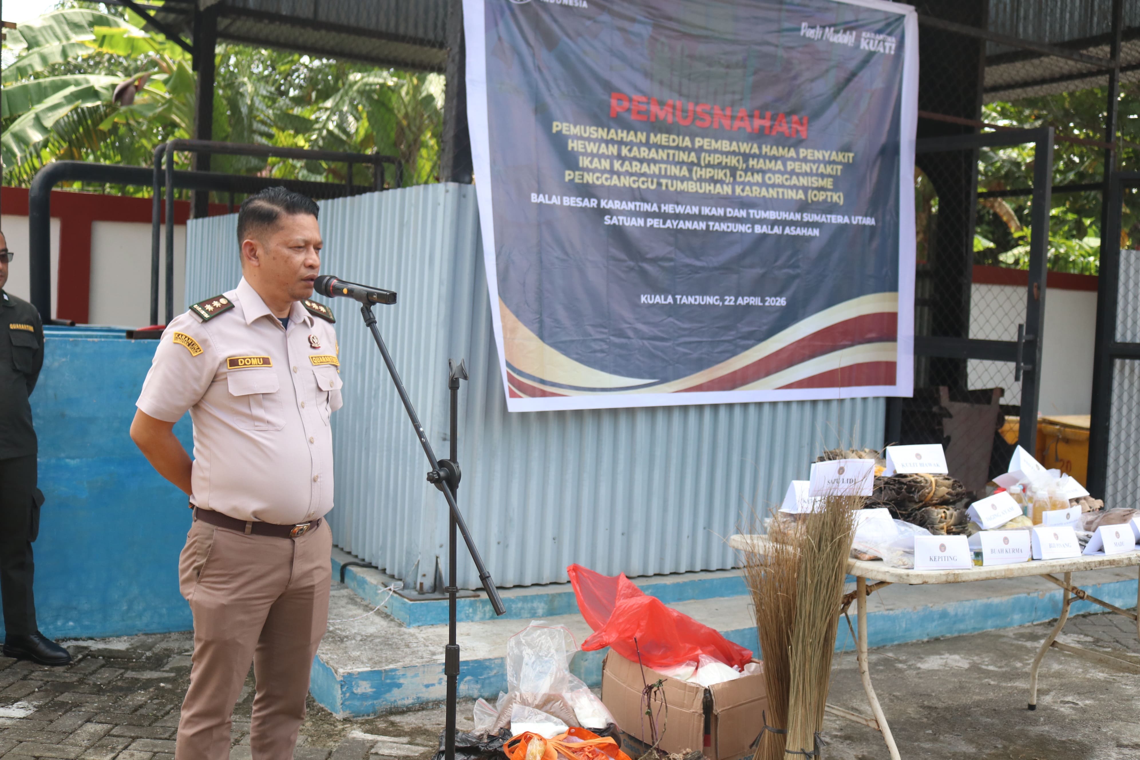 Dalam sambutannya, Penanggung Jawab Satuan Pelayanan Tanjung Balai Asahan, Domu Sinaga, menegaskan komitmennya dalam penegakan hukum. "Komoditas tersebut tidak memenuhi persyaratan karantina untuk pemasukan dan pengeluaran, sehingga secara undang-undang harus dimusnahkan," ucapnya.Secara terpisah, Kepala Karantina Sumatera Utara mengimbau masyarakat agar melaporkan komoditas yang akan dilalulintasnya. "Kami mengimbau seluruh masyarakat untuk tidak ragu melaporkan komoditas yang dilalulintaskan kepada petugas karantina. Dengan melapor karantina, Anda telah berkontribusi nyata dalam menjaga kekayaan hayati nusantara dari ancaman hama penyakit, karena melindungi negeri adalah tanggung jawab kita bersama."