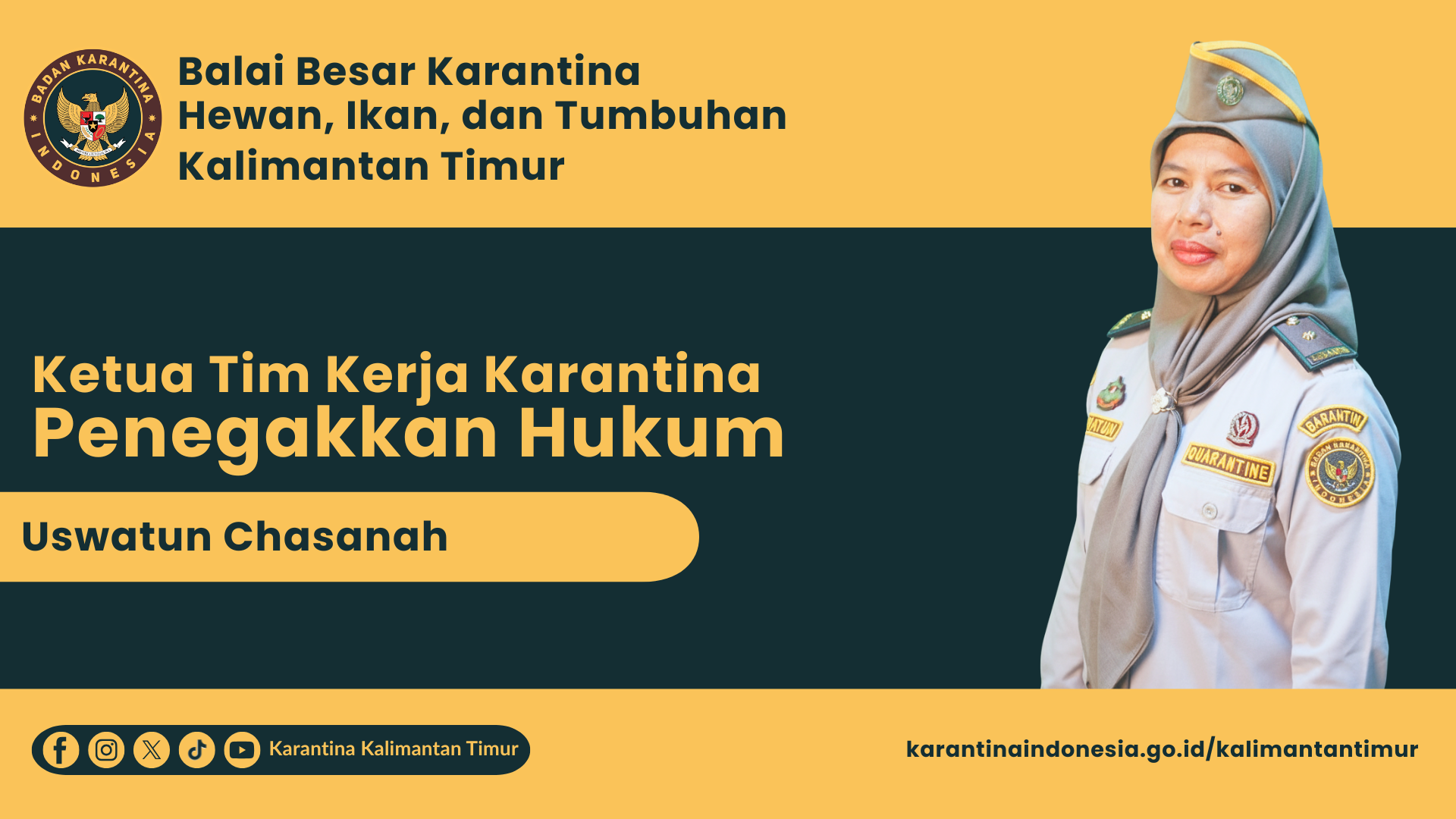 Pejabat struktural terdiri dari kepala balai dan kepala bagian umum. Kepala balai bertanggung jawab memimpin keseluruhan pelaksanaan tugas, serta kebijakan karantina di wilayah Kalimantan Timur. Kepala bagian umum bertanggung jawab mengelola di bidang administrasi, kepegawaian, keuangan, dan layanan pendukung untuk mendukung operasional balai.